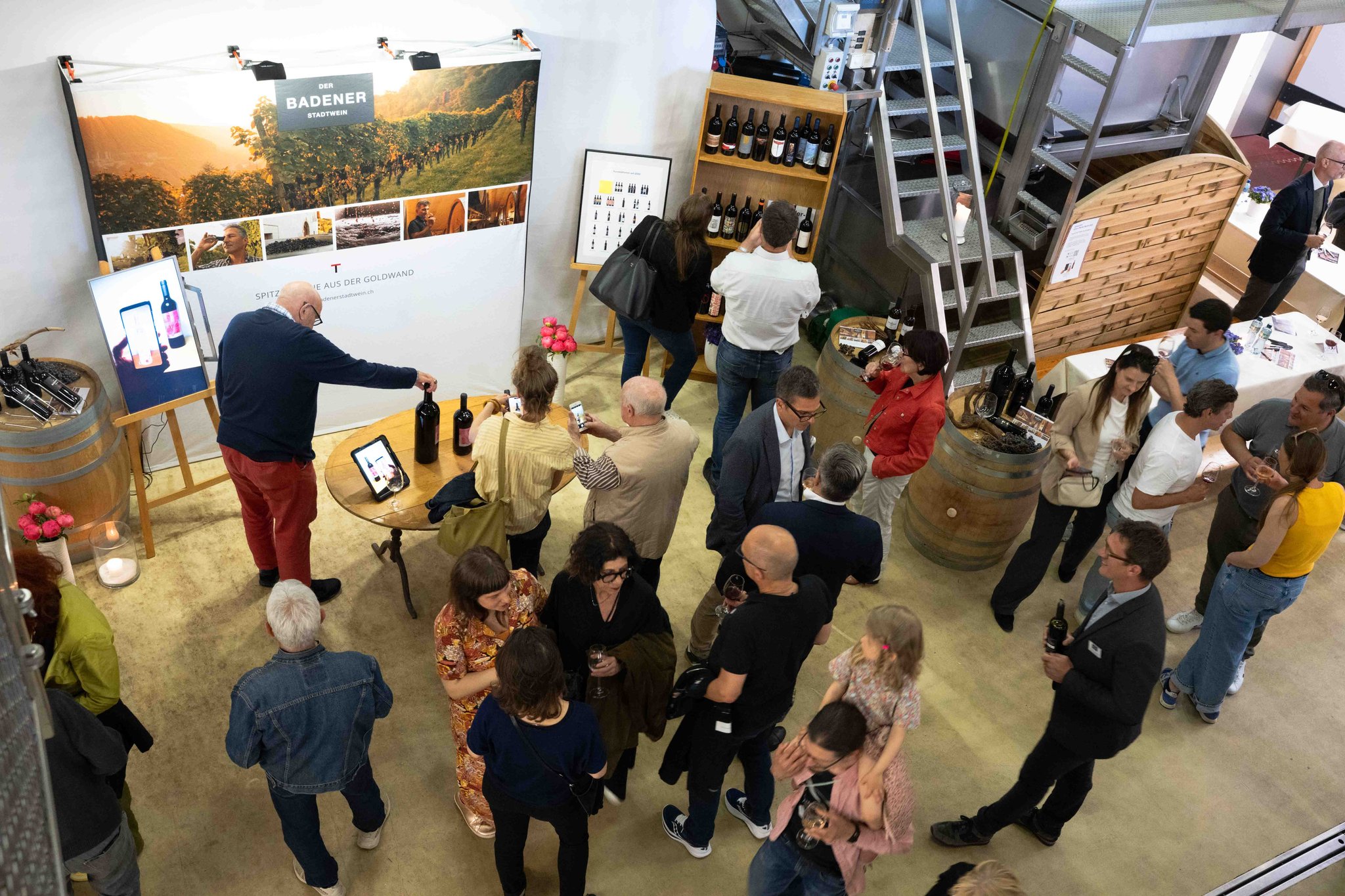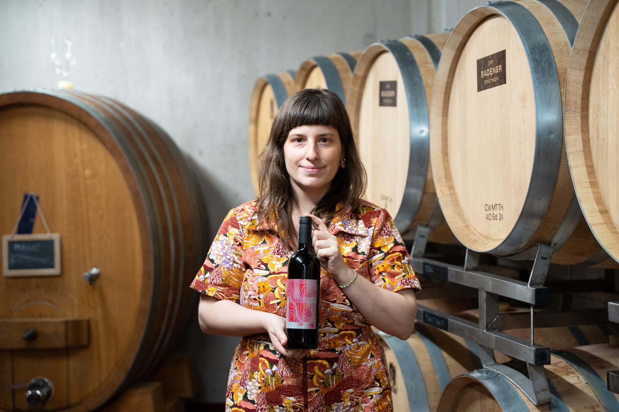Die Künstlerin Myrien Barth aus Nussbaumen bei Baden tauchte für die Kunstedition 2025 mit ihrer Kamera und einem speziellen Objektiv wortwörtlich in den Wein ein, tauchte weiter bis zu den digitalen Pixeln des Videobildes und erweiterte ihr Design der Weinetikette mit Augmented Reality, einem Zusammenspiel der digitalen und analogen Welt.